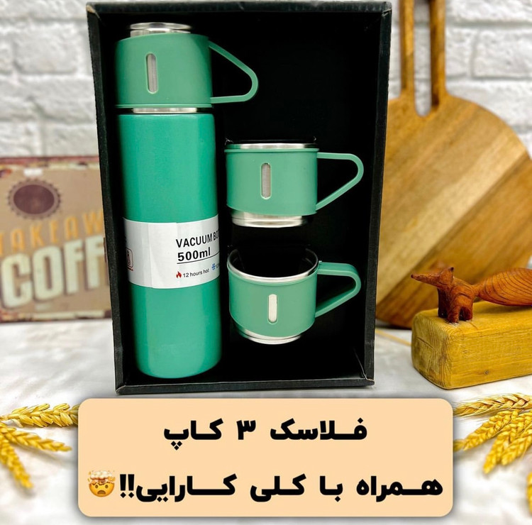 یک فنجان بر روی درب فلاسک و ۲ فنجان داخل جعبه✅